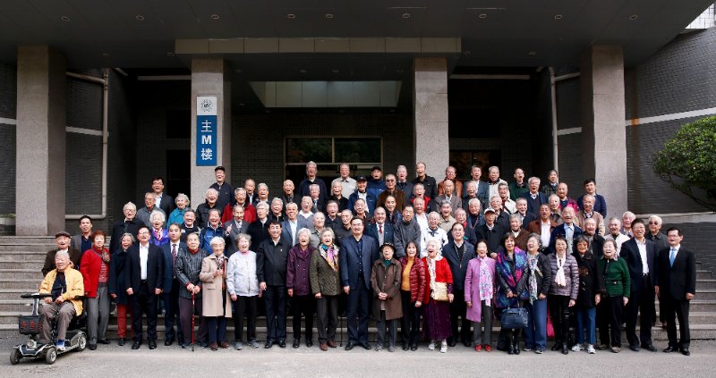 2017年部分耄耋之躯的同学相聚于母校,共庆母校65周年华诞,合影一幅,赋诗一首以贺。